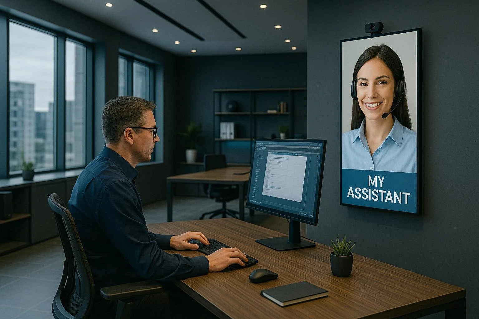 We even have an option to set up a vertical TV in your office so your assistant can be “right there” with you 9–5, every single day, just like an in-house hire… without the in-house cost.